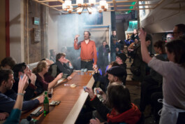 Based on Fichte's novel, the Jupi Bar is being completely transformed into a lively backdrop for interdisciplinary events mixed in with the regular program of the collectively run bar: Interactive performances, an interdisciplinary pub salon, a radio play as performance, a documentary film evening with eyewitnesses of the old pub, a participatory 24-hour reading marathon of the entire novel, audio installations, dance evenings... The palette counters the commercialized inner-city district with an experimental space for consumption and criticism, pub life, regularity and fresh encounters. The very concept of a pub is questioned and concurrently made tangible – as a collective, nostalgic and utopian space of encounter. The month-long performance project involves more than twenty artists of different genres.