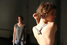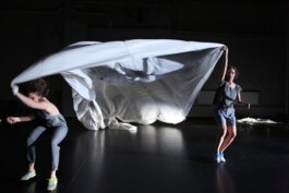 or one dancing turns a text into an invitation to dance. The performance is based on Gertrude Stein's experimental portrait of dance pioneer Isadora Duncan entitled orta or ne dancing (1911/12). "She was one, she was moving in some directions, she was moving, she was thinking in feeling in meaning being existing. She was that one. She was dancing." As a hybrid of reading, dance performance and concert, two sisterly performers translate written text into spoken text, language into movement, and vice versa. In between two bodies and many voices, the word "one "is made to dance 1164 times.