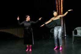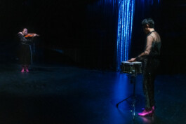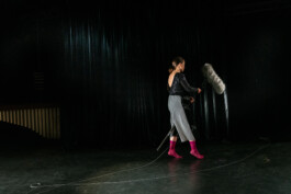 Denn eigentlich ist „+1“ eher ein Nachdenken über das Dazwischen. Den Moment der Stille, wenn der Raum dunkel wird und das, was kommen soll, noch nicht angefangen hat. Der Spot auf dem Boden bleibt leer. Der verheißungsvolle Vorhang im Hintergrund geschlossen. Während Lois Bartel bald über eine abwesende Stimme sinniert, begegnet sie der Perkussionistin Ying-Hsueh Chen, die von einem Essen für verstorbene Verwandte berichtet und lautmalerisch ein unsichtbares Instrument bespielt. Als Dritte im Bunde hält die Audiokünstlerin Katharina Pelosi die Fäden der Sounds zusammen. […]