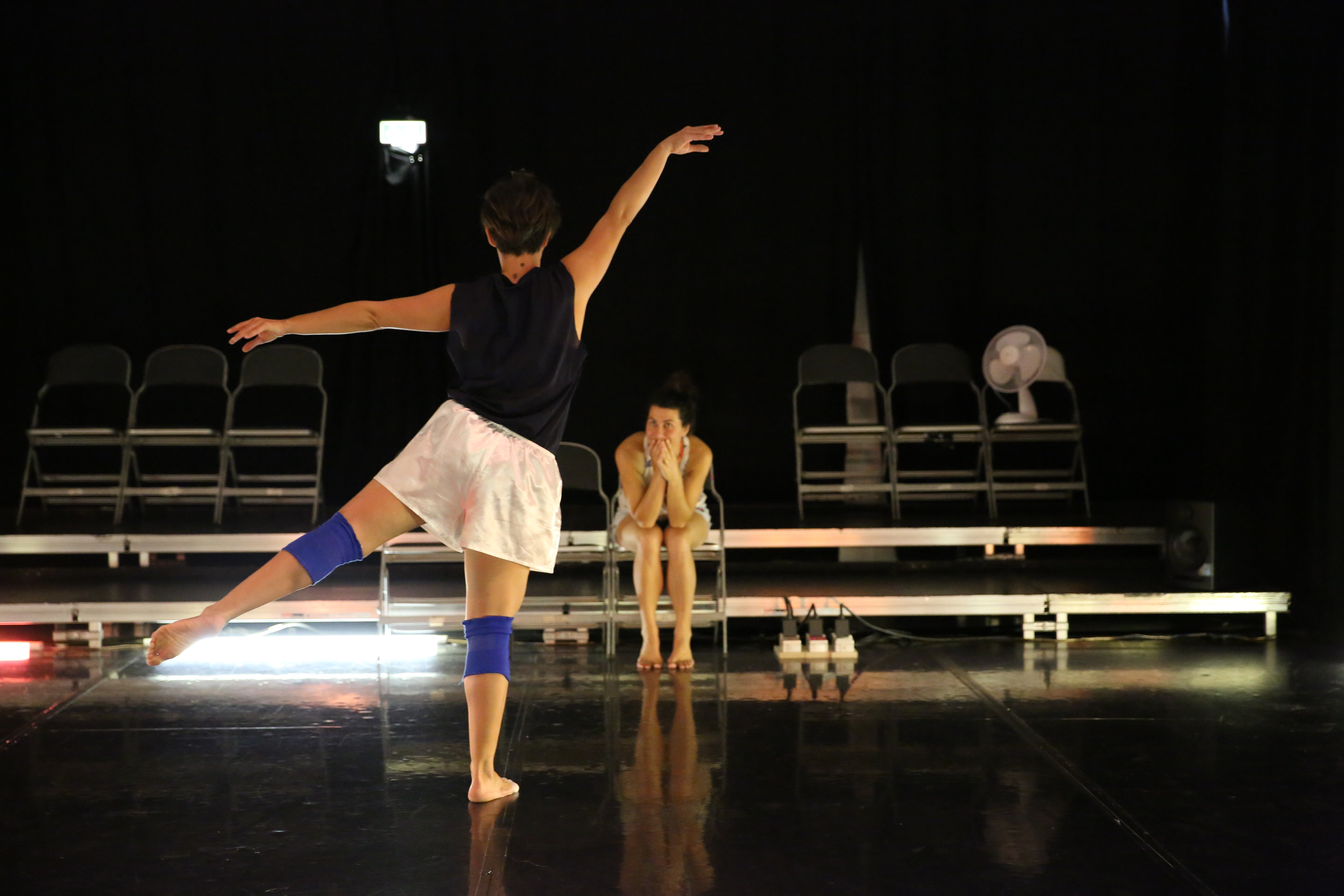 Zeitgenössische Tanztrainings bringen eigene Stimmen und Sprachen hervor. Hier mischen sich Tanzvokabeln und Sing-Sang, Anweisungen und Lob, Akzent und Kauderwelsch, Poesie und Popsong. private dancer spielt dieses Wirrwarr in einen leeren Bühnenraum: „Und five, six – five, six, seven, eight – and melt. Und tschup. Legs like volcanos!"