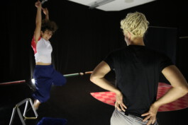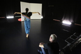 The starting point of private dancer were audio recordings of five dance trainings at K3 | Tanzplan Hamburg. The globalized world of professional training thus becomes audible and visible: private dancer offers a stage to the musical taste, the dramaturgies, dress codes, ways of speaking and modes of movement of different professional trainings. The one-to-one situation allows for new perspectives on interaction and intimacy and blurs the line between training, rehearsal and performance.